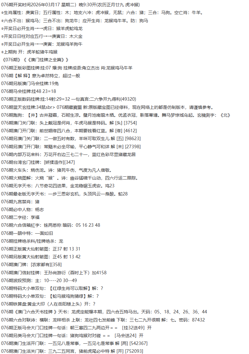 076期【澳门挂牌平特报】| 澳门挂牌原创解挂牌平特报,每期必中平特 |